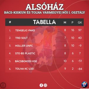 Nemzeti ünnepünk hétvégéjén több bajnoki sorozat is szünetet tartott, egyedül a Bács-Kiskun és Tolna vármegyei I. osztályú női liga alsóházában rendeztek két mérkőzést. Csütörtökön este a Holler UNFC, vasárnap a Bácsbokod KSE igyekezett magánál tartani a pontokat.